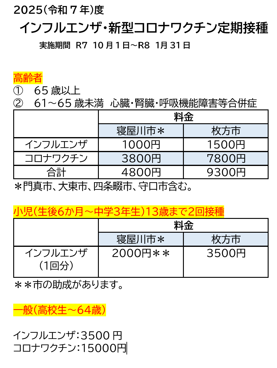 2025年度インフルエンザ、コロナワクチン接種予約開始しました